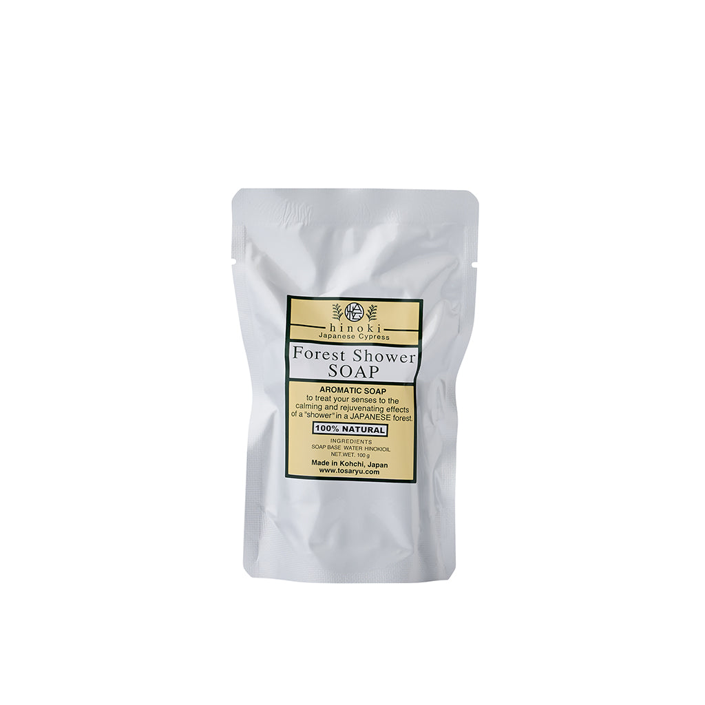 Tosaryu’s Forest Shower Soap gently cleanses the skin while evoking freshness like a Japanese forest. Made without additives and scented with essential oil distilled from Shimanto hinoki cypress leaves, it releases a light, citrusy aroma. A simple daily ritual that leaves skin clean, soft and naturally invigorated.