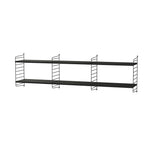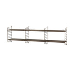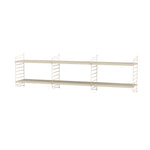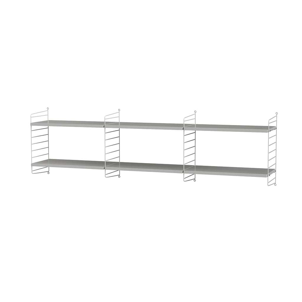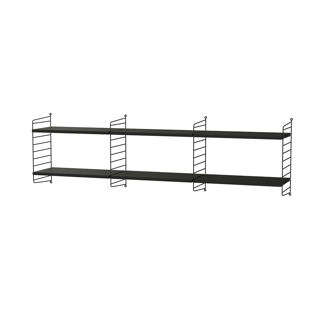Fitting instructions and wall fixings are supplied within all String Furniture products.  The side panels are constructed from steel and powder coated in a range of colours. The shelves are constructed from MDF and either veneered with real wood or coated with a hard wearing lacquer.